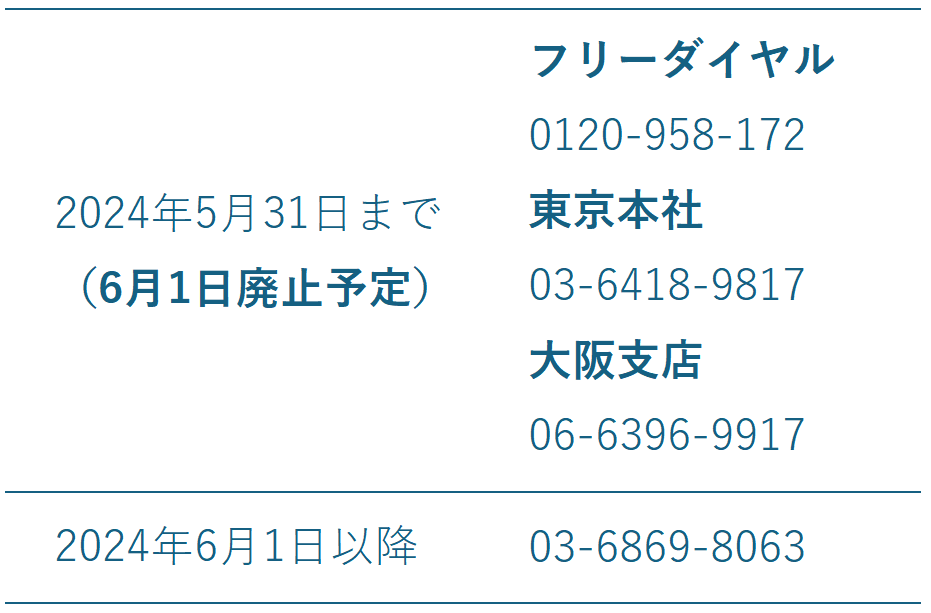お問い合わせに関しては、下記のお電話番号までお願い申し上げます。