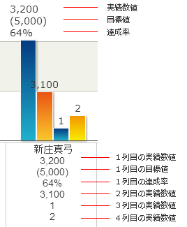 グラフの各列ごとに目標値や達成率を表示できるようになりました。