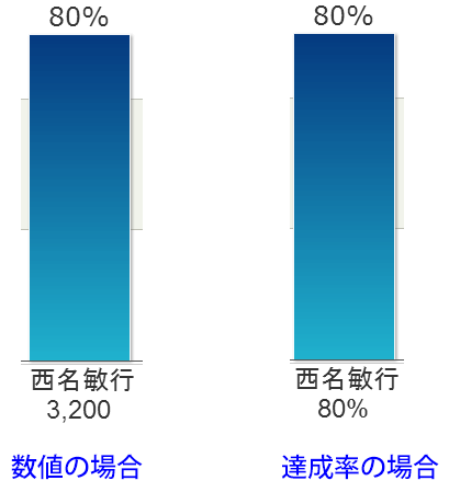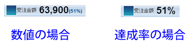 2.[達成率型の下段テーブル数値]欄で、[数値] または [達成率(%)]を選択