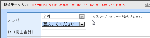 従来、メンバーの多い場合、対象メンバーを探しだすのに手間がかかっておりましたが、グループを選択することにより、表示されるメンバーを絞り込むことが可能となりました。