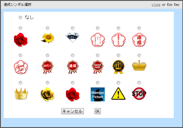 注意:達成シンボルが選択されていて達成した場合、顔写真に重ねて表示されます