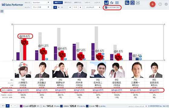 ※グラフ列ごとの達成率は、1件平均値表示を行っても再計算されません