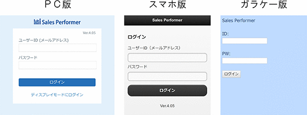 ガラケー版:https://saas.salesperformer.jp/アカウント名/s