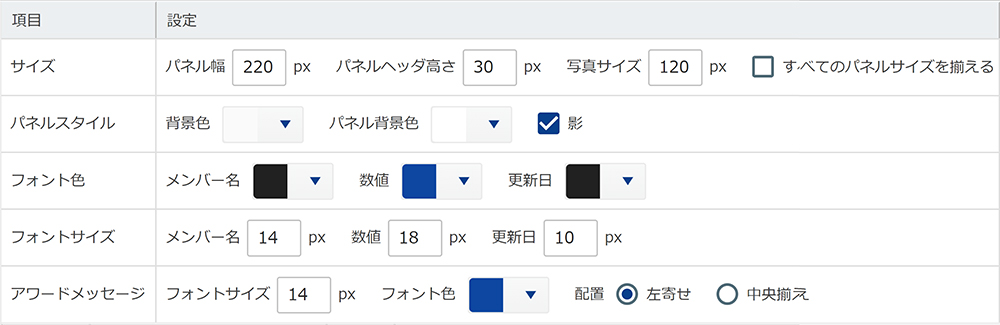 設定方法 - パネル設定(アワード)