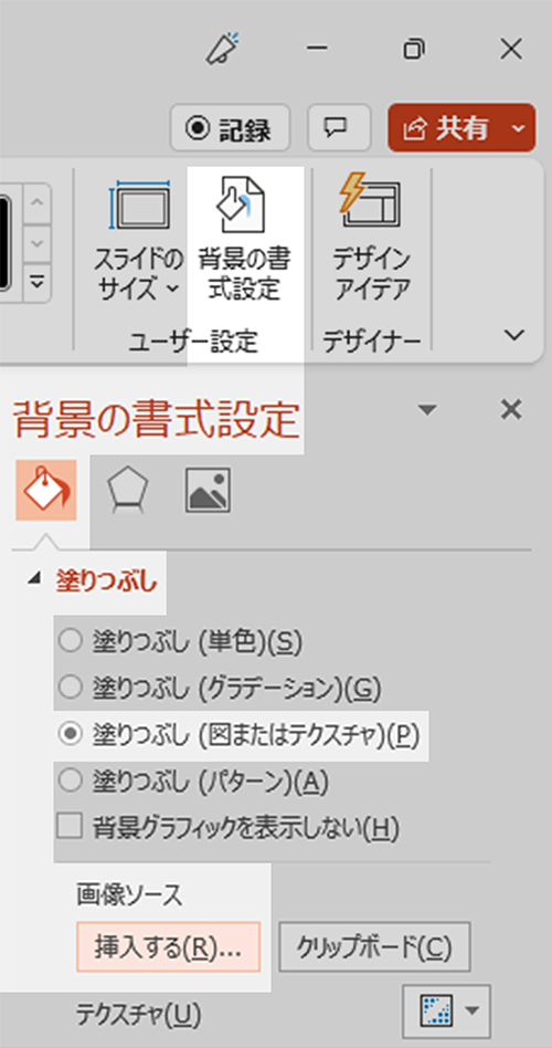 上記の画像の文言を変更したい場合は、パワポ素材から自由に変更いただけます。 あらかじめ画像サイズの寸法が調整されておりますので、新たな画像を差し込むことも可能です。