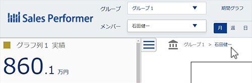 グループ所属メンバーのグラフが表示され、画面上部の「パンくずリスト」から