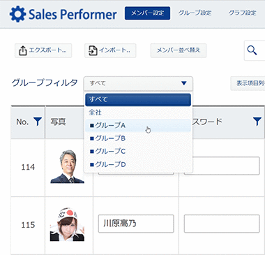 メンバー個別のグループフィルタ表示指定が可能に