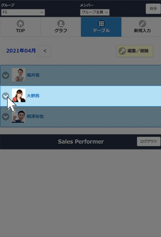 複数のメンバー、入力件数がスマホ画面に表示された場合でも、閲覧/編集しやすくなりました。