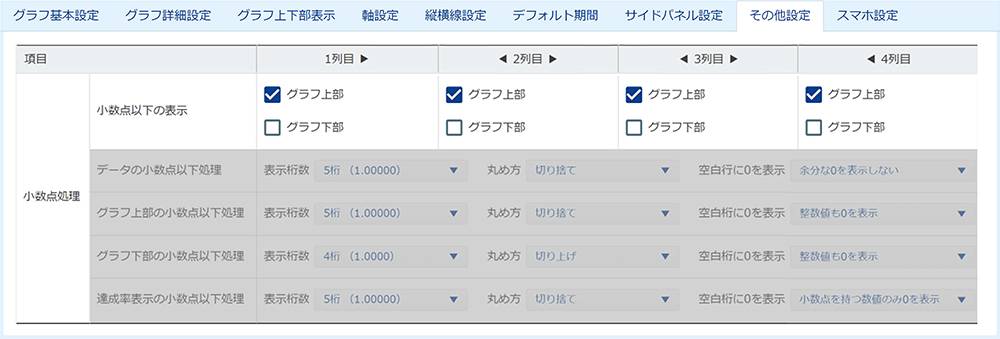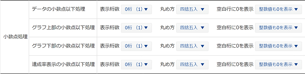※ 「グラフ上部」の小数点処理設定は、グラフ箇所以外にも「メール関数」「レポート」「レコード」