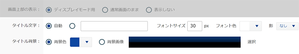 | 画面上部の表示 | ディスプレイモード用 | 専用ヘッダー表示が設定できます |